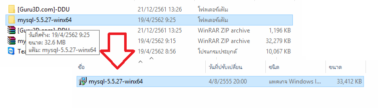 1. Download โปรแกรมฐานข้อมูล MySQL ตามสเปกเครื่องคอมพิวเตอร์ (32 bit หรือ 64 bit)